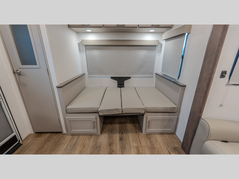 The composite sidewalls are ultra durable and the Benchmark chassis features a super saver upper deck. There are industry leading tank sizes, smart storage solutions, flush floor slide out floors throughout, and no carpet to make cleaning easier than ever.