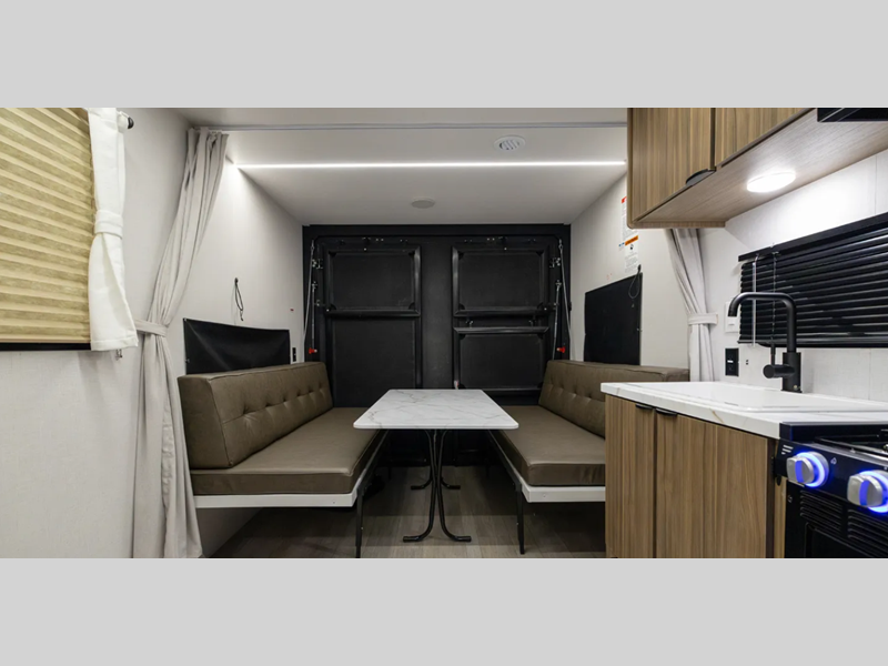 Sleeps 4 Length 23 ft 3 in Ext Width 8 ft Ext Height 11 ft 3 in Fresh Water Capacity 54 gals Grey Water Capacity 43 gals Black Water Capacity 43 gals Furnace BTU 20000 btu Available Beds Queen Refrigerator Type Extra Large Black Glass 12V Convection Cooking Yes Cooktop Burners 3 Number of Awnings 1 Garage Size 10 ft 3 in LP Tank Capacity 20 lbs Water Heater Type On Demand Awning Info 14' Power w/Adjustable Legs and LED Light Strip Axle Count 2 Number of LP Tanks 2 Shower Type Neo-Angled Solar Wattage 200 watts Similar Floorplans