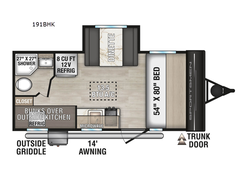 KZ Sportsmen Classic travel trailer 191BHK highlights: Bunk Beds Booth Dinette ... more about Sportsmen Classic 191BHK